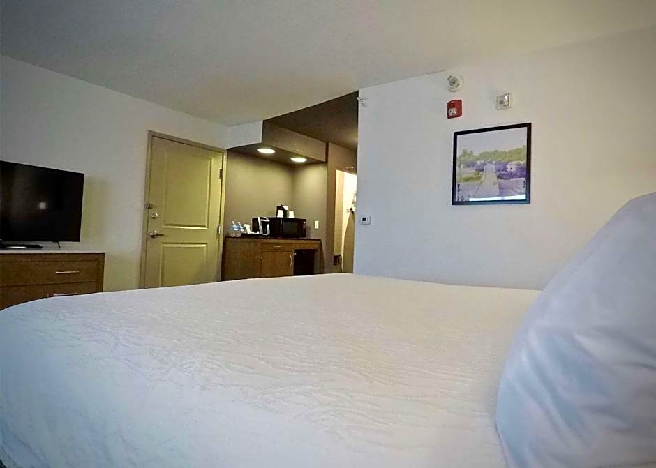This suite offers a separate seating area with sofa bed, refrigerator and microwave.
